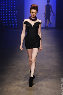 This is Konstantina Mittas from RAFW. So digging the head detailing, the puff on the disconnected sleeves, the cut outs and the bent over bust. Sexy. Yes.